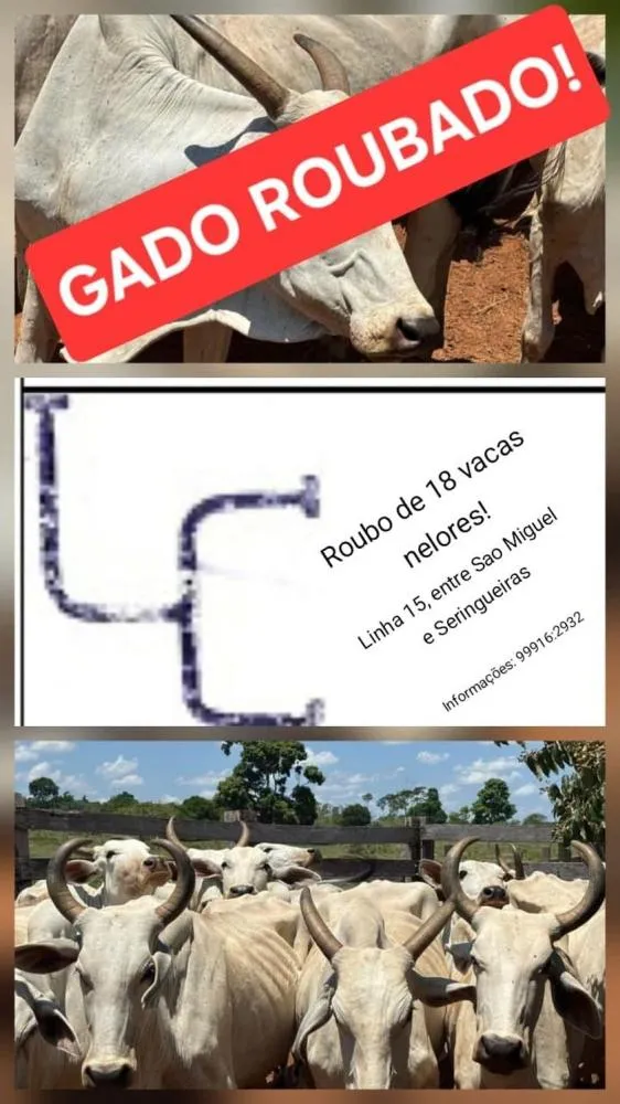 Um produtor rural de São Miguel do Guaporé sofreu um grande prejuízo após ter 18 cabeças de gado da raça Nelore furtadas de sua propriedade. O crime, caracterizado como abigeato, ocorreu entre a última terça e quinta-feira, em uma fazenda localizada na Linha 15, na região compreendida entre as linhas 09 e 11, em direção ao município de Seringueiras.